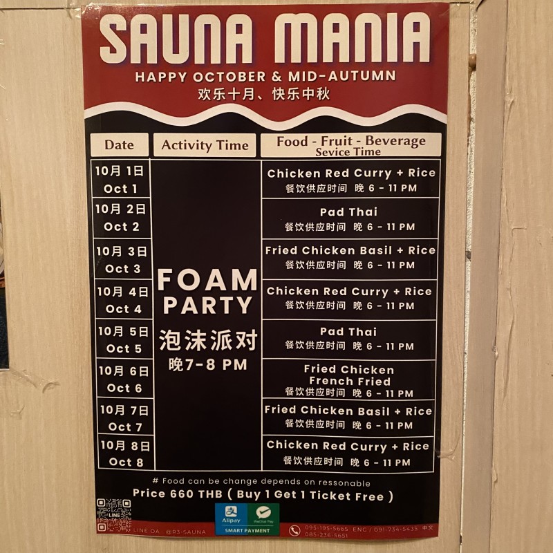 - 毎回日曜日19時から屋上で乱交泡パーティが開催されてますが、入場料500Bと超強気価格!めちゃくちゃ混んでましたが、ヤングなローカル君は非常に少なく、逆に集団でぺちゃくちゃお喋りな中国人だらけ!バンコクのテンバとしては終わってる感満載!客とヤリまくるイベントボーイ達のレベルも低くなってるし、残念!