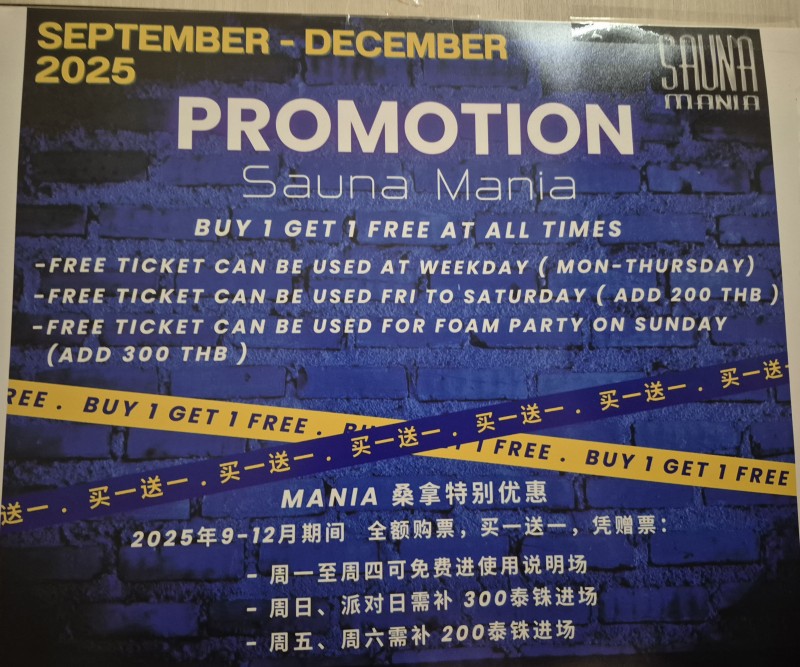 2025年12月中頃に行きました。料金は600Bでしたが、レシートを2Fへ持っていくと丼物か唐揚げ定食を選んで食べる事ができます。アイスクリームは食べ放題で、冷たいお水とお茶も準備してくれていました。館内も清潔でキレイです。スタッフもみんな対応が丁寧でした。1Fが浴場になっており日本の銭湯と変わらない感じで、スチームサウナが1つとドライサウナが1つありました。スチームサウナ内は暗くなっており、ギューギューに人が入っており、ドライサウナは比較的人が少なかったです。皆サウナでフェラや手コキでハッテンしていました。いい感じの人をサウナで見つけると3階のダークルームでいちゃいちゃしていました。ローションやゴムは準備されていませんでした。スリム〜筋肉質がモテるようでしたが、太めかガチムチもちらほらいたので、どんな方が行っても楽しめると思います!オススメですよ!