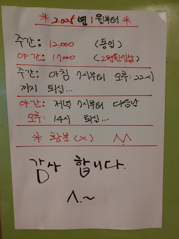 夜間 :15,000ウォン